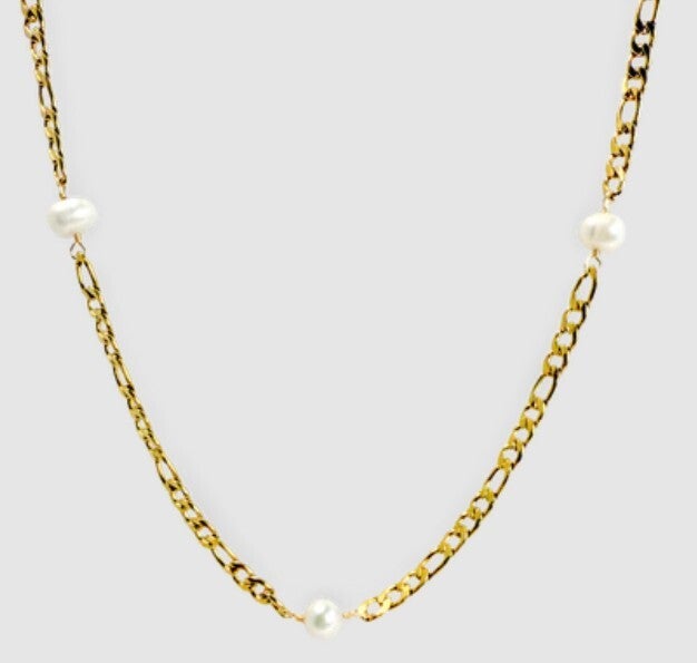 NECKLACE/Pearl + Figaro Chain