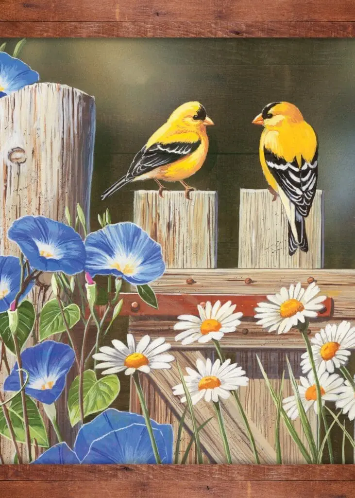 BL/Yellow Birds On Fence