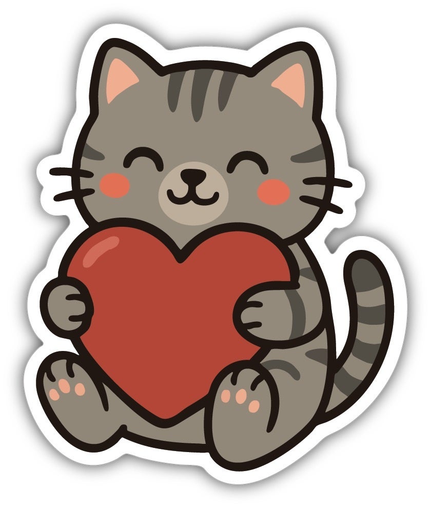 STICKER/Cat Hugging Heart