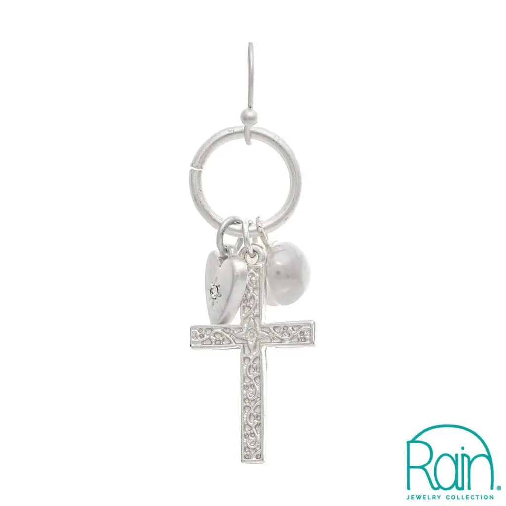 EARRING/Cross Heart Faux Pearl