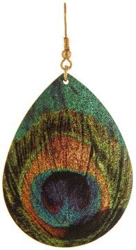 EARRING/Green Printed Feather