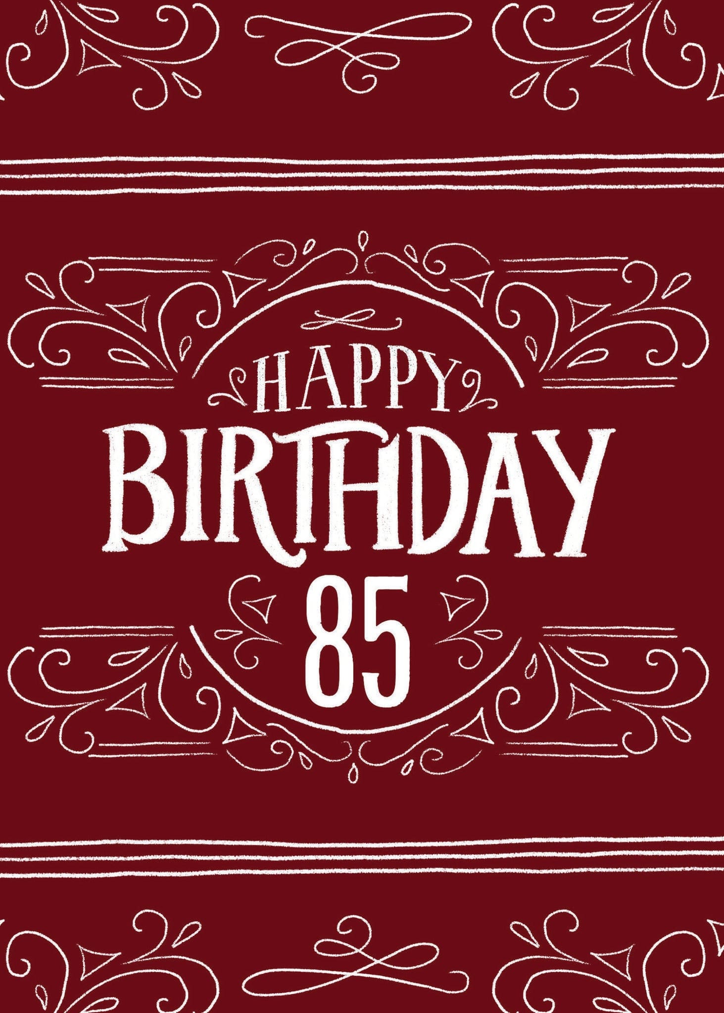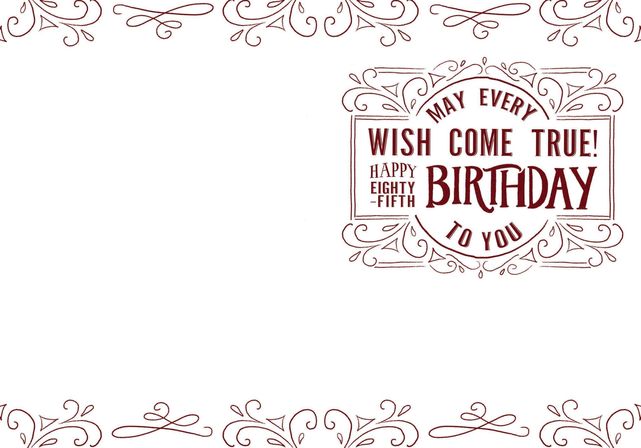 5″x7″ card with colour coordinating envelope. Inside: May every wish come true! Happy Eighty-Fifth Birthday to you. Printed in Canada