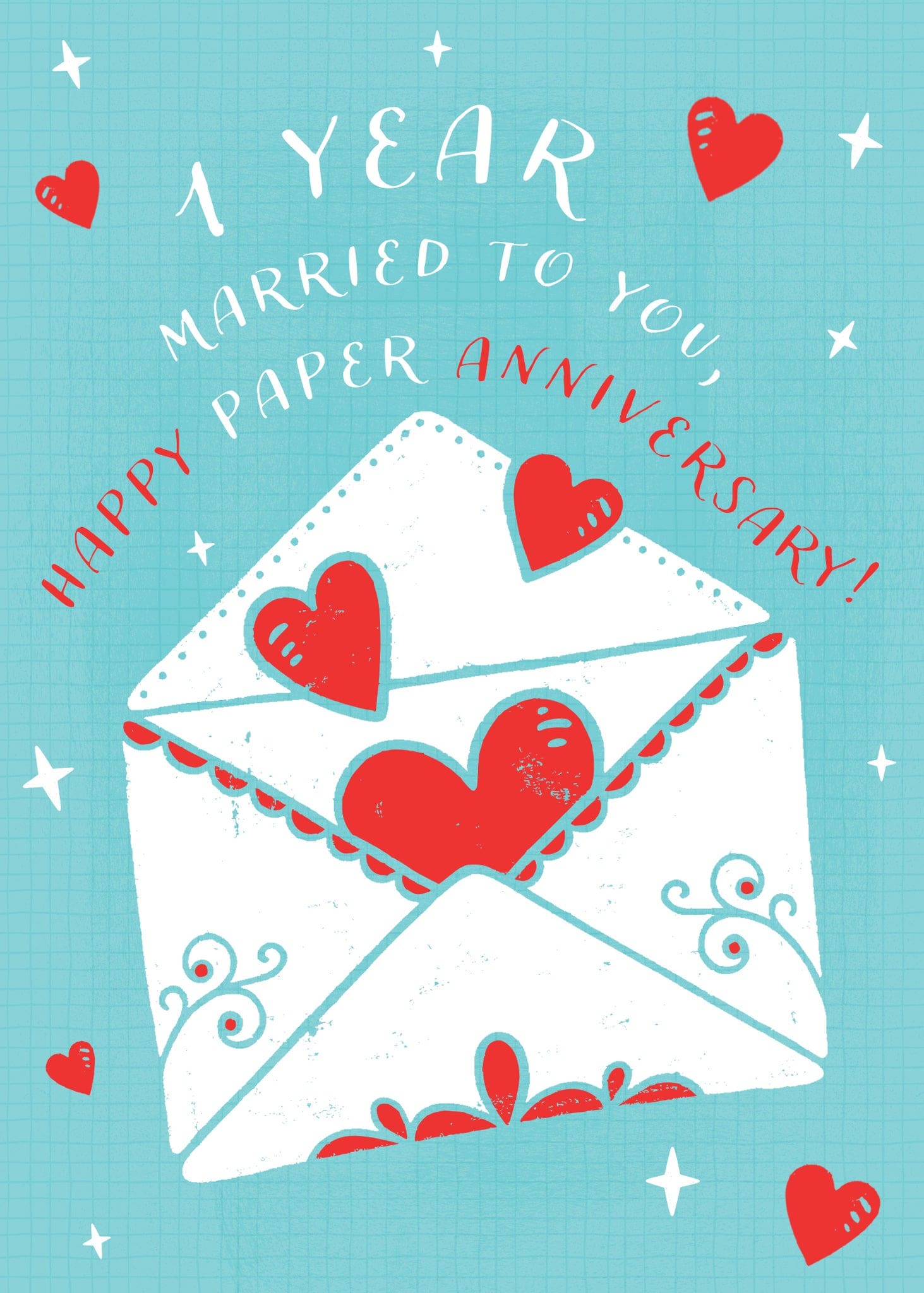 5″x7″ card with colour coordinating envelope. Inside: Here’s to a year of love and laughter, with many more to come! Printed in Canada.