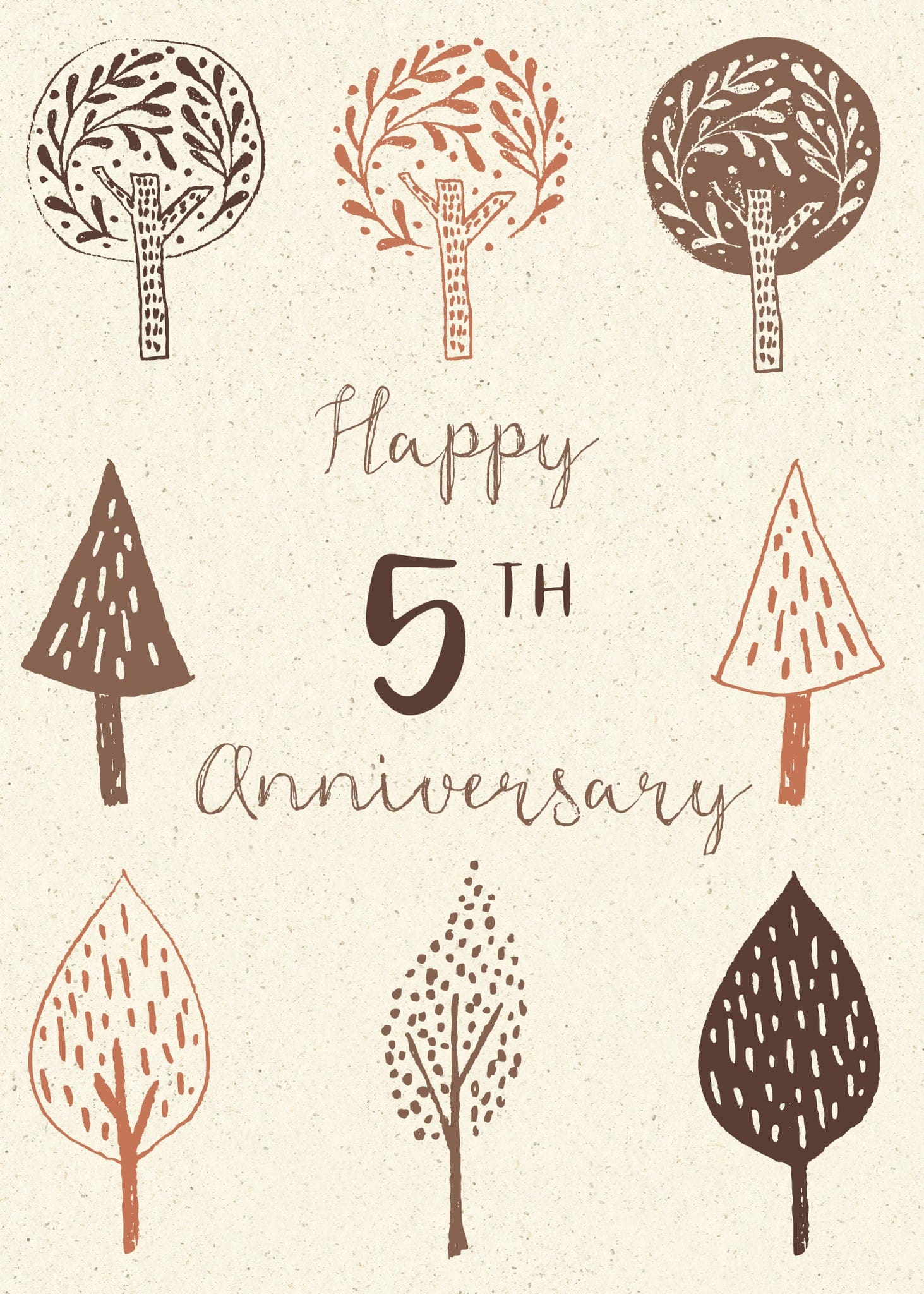 5″x7″ card with colour coordinating envelope. Inside: Five years of growing stronger together – here’s to so many more! Happy Anniversary. Printed in Canada.