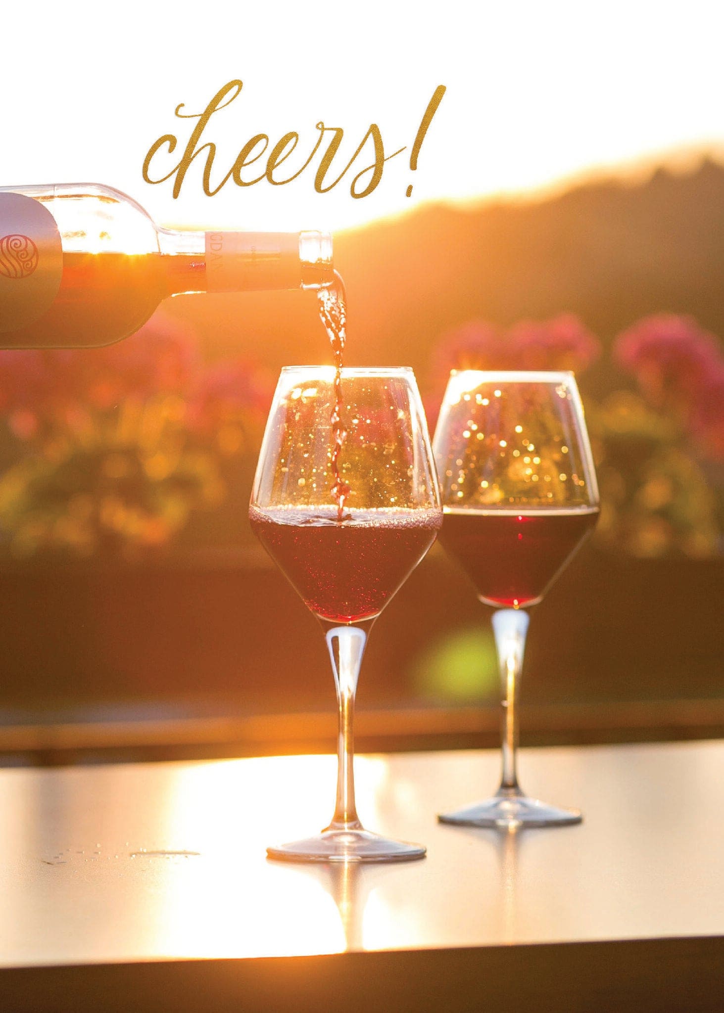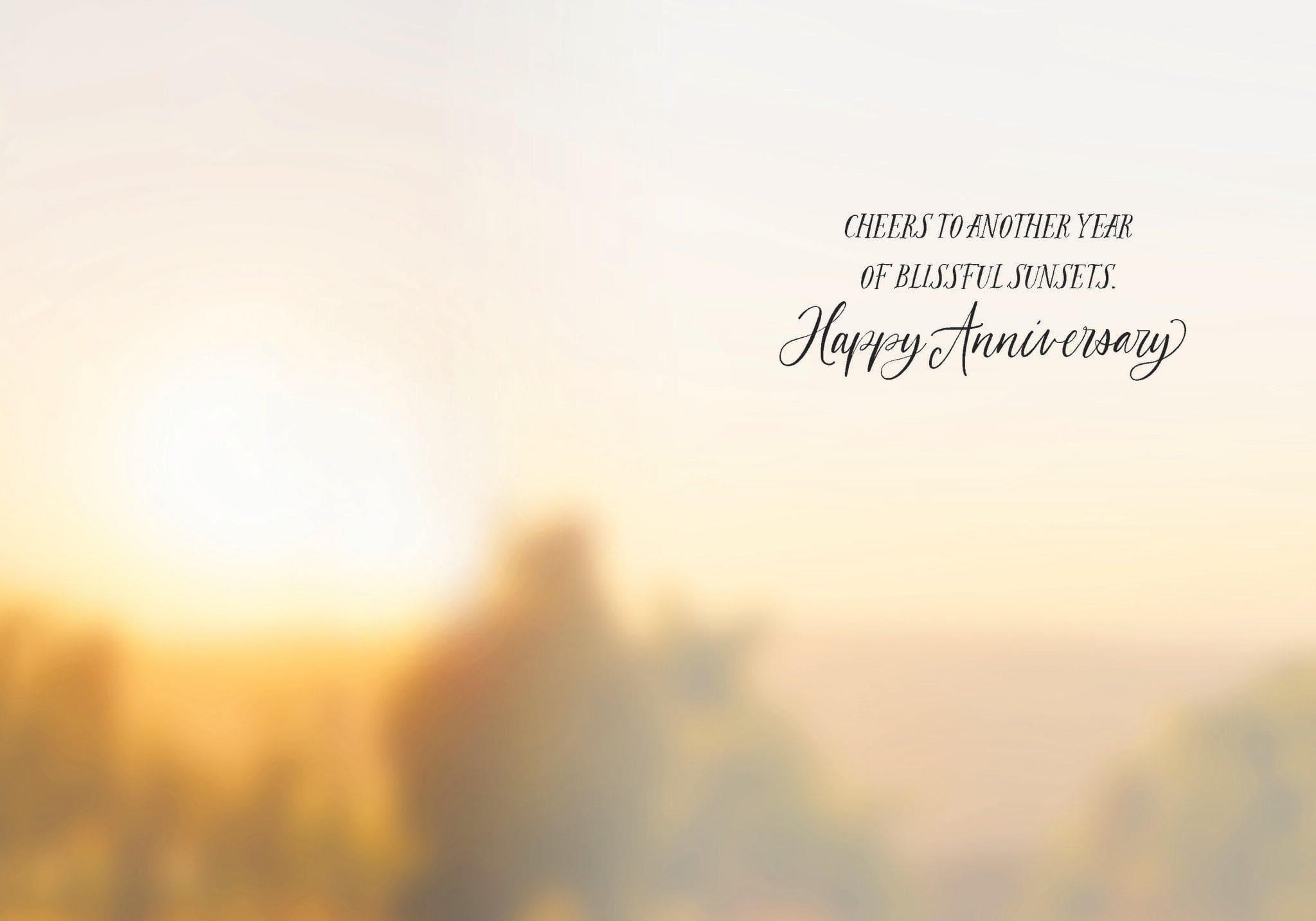 Each card measures 5″x7″ (13cmx18cm) and is printed in full colour on smooth paper, comes with a coordinating colour envelope. Printed in Canada. INSIDE: Cheers to another year of blissful sunsets. Happy Anniversary