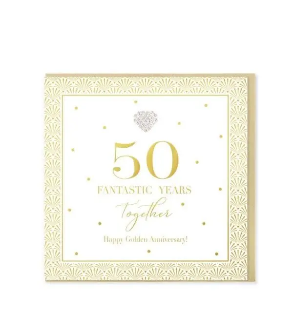 This 6› x 6› greeting card is finished with a beautiful gold foil, printed on luxury card stock and embellished with a sparkling diamante jewel. Presented with a Gold pearlescent envelope and cello wrapped. INSIDE: Blank