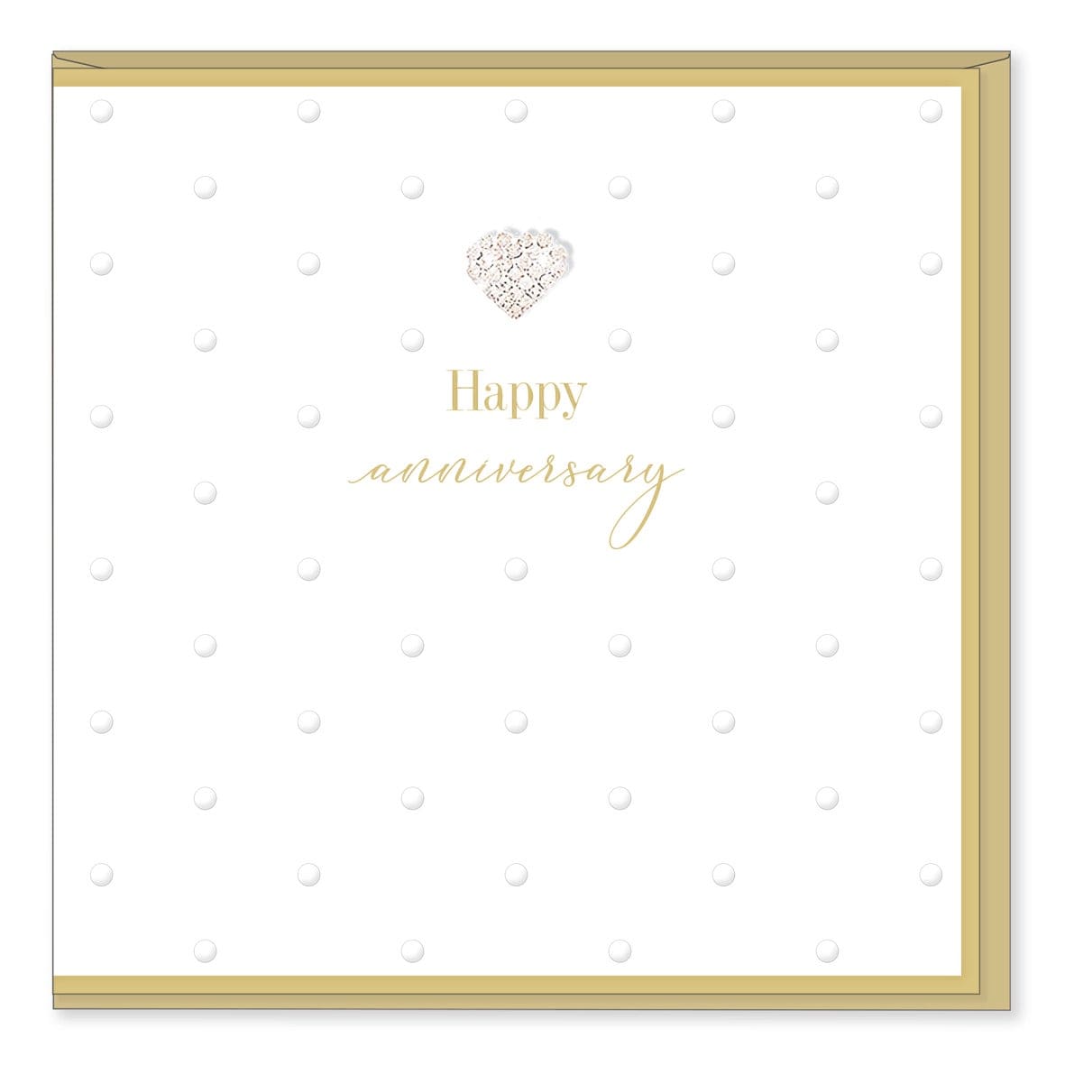 Mad Dots Cards. This 15cm x 15cm greeting card is printed on cardstock, features gold foil details and is embellished with a diamante jewel. Cellophane wrapped with a pearlescent gold envelope. Made in England. INSIDE: Blank