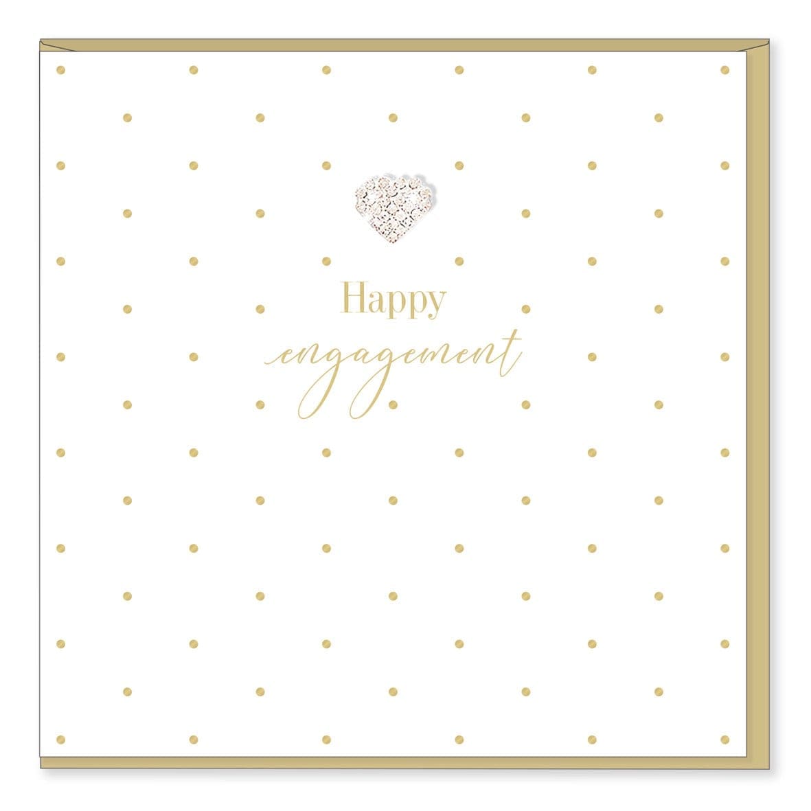 Mad Dots Cards. This 15cm x 15cm greeting card is printed on cardstock, features gold foil details and is embellished with a diamante jewel. Cellophane wrapped with a pearlescent gold envelope. Made in England. INSIDE: Blank