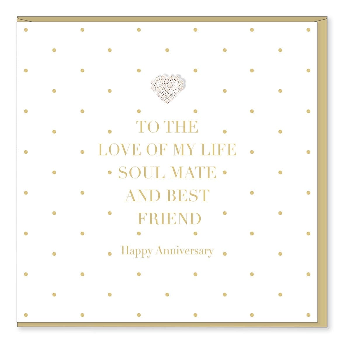 Mad Dots Cards. This 15cm x 15cm greeting card is printed on cardstock, features gold foil details and is embellished with a diamante jewel. Cellophane wrapped with a pearlescent gold envelope. Made in England. INSIDE: Blank