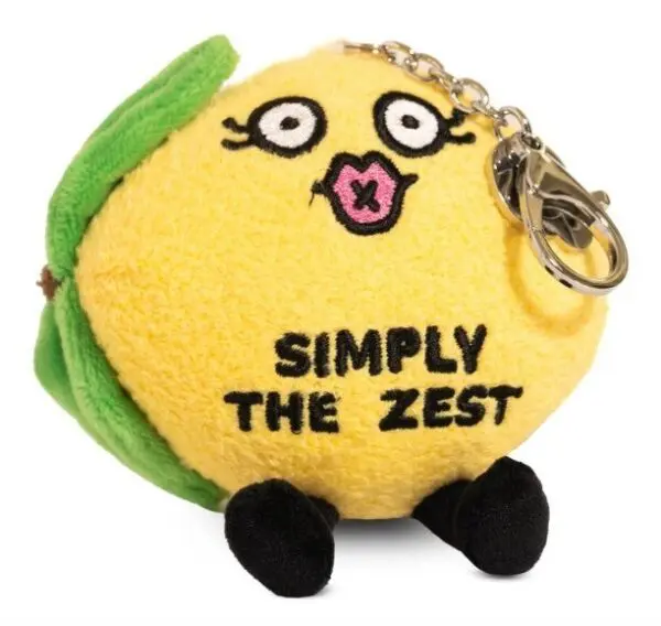 Soft plush character bag clip made of high-quality fabrics. Features sewn expression, 3D detailing, and weighted bottom to keep plushie upright. Measures: 4.3″ x 2.4″ x 3.5″.