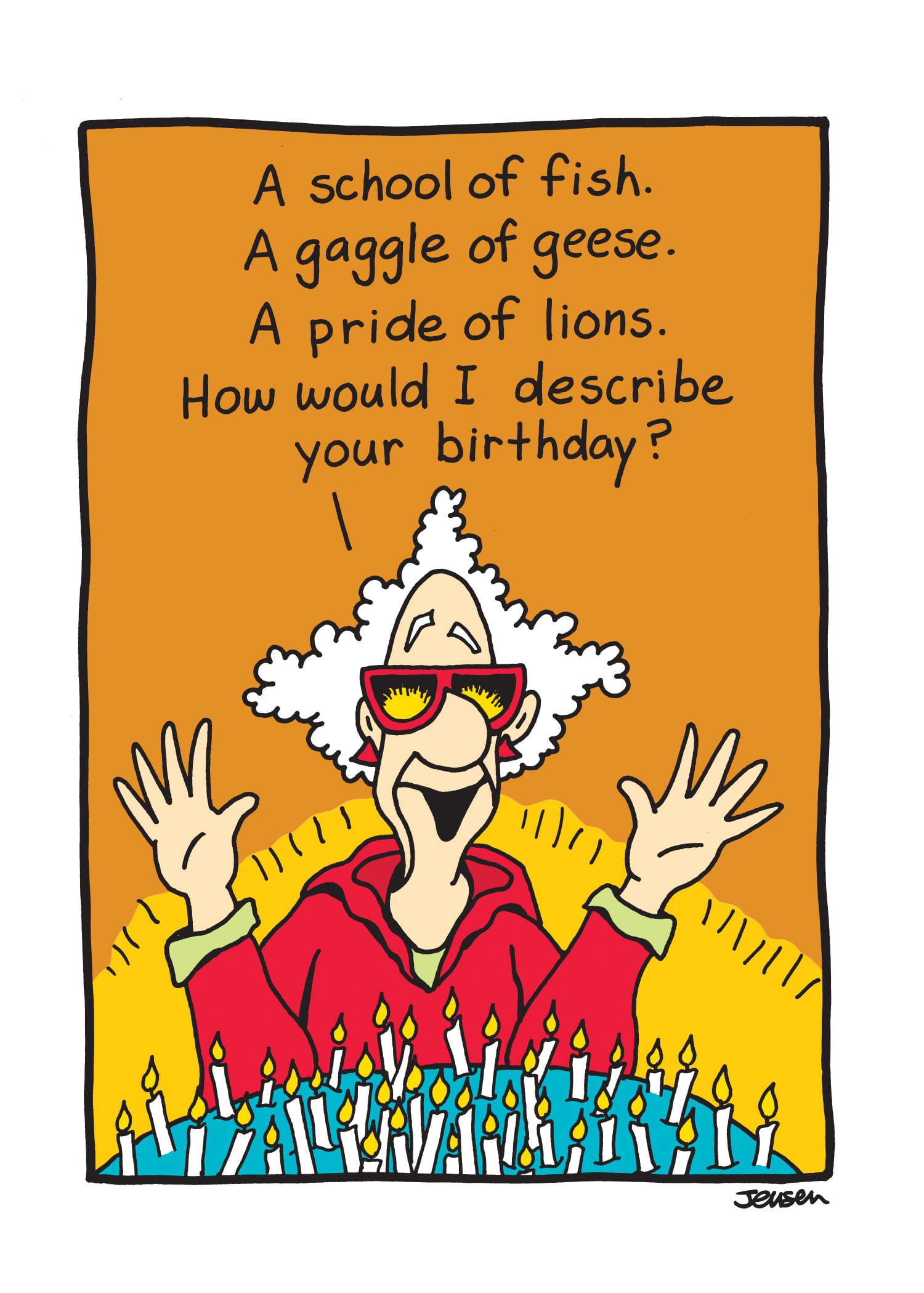 This 5″ x 7″ greeting card is printed in Canada, in full colour (inside included) on recycled paper and is paired with a colour-coordinated envelope. INSIDE: A shitload of candles!