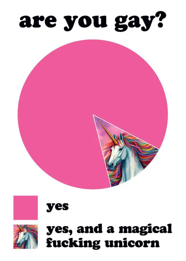 This greeting card measures 5″ x 7″. INSIDE: Did we really need to ask? Happy Birthday.