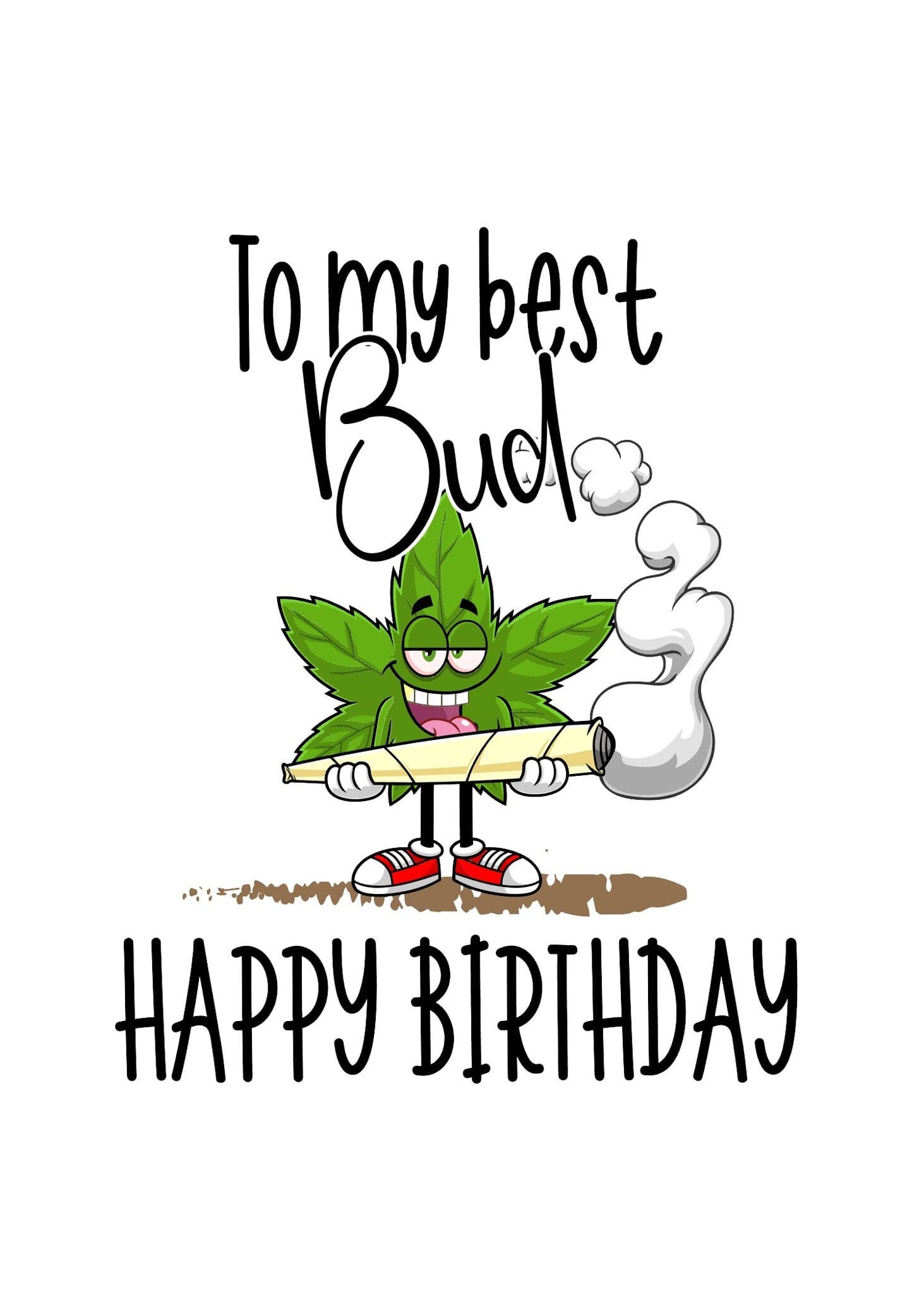This greeting card measures 5 x 7 and comes with colourful envelopes. Printed in Canada. INSIDE: pic of marijuana buds