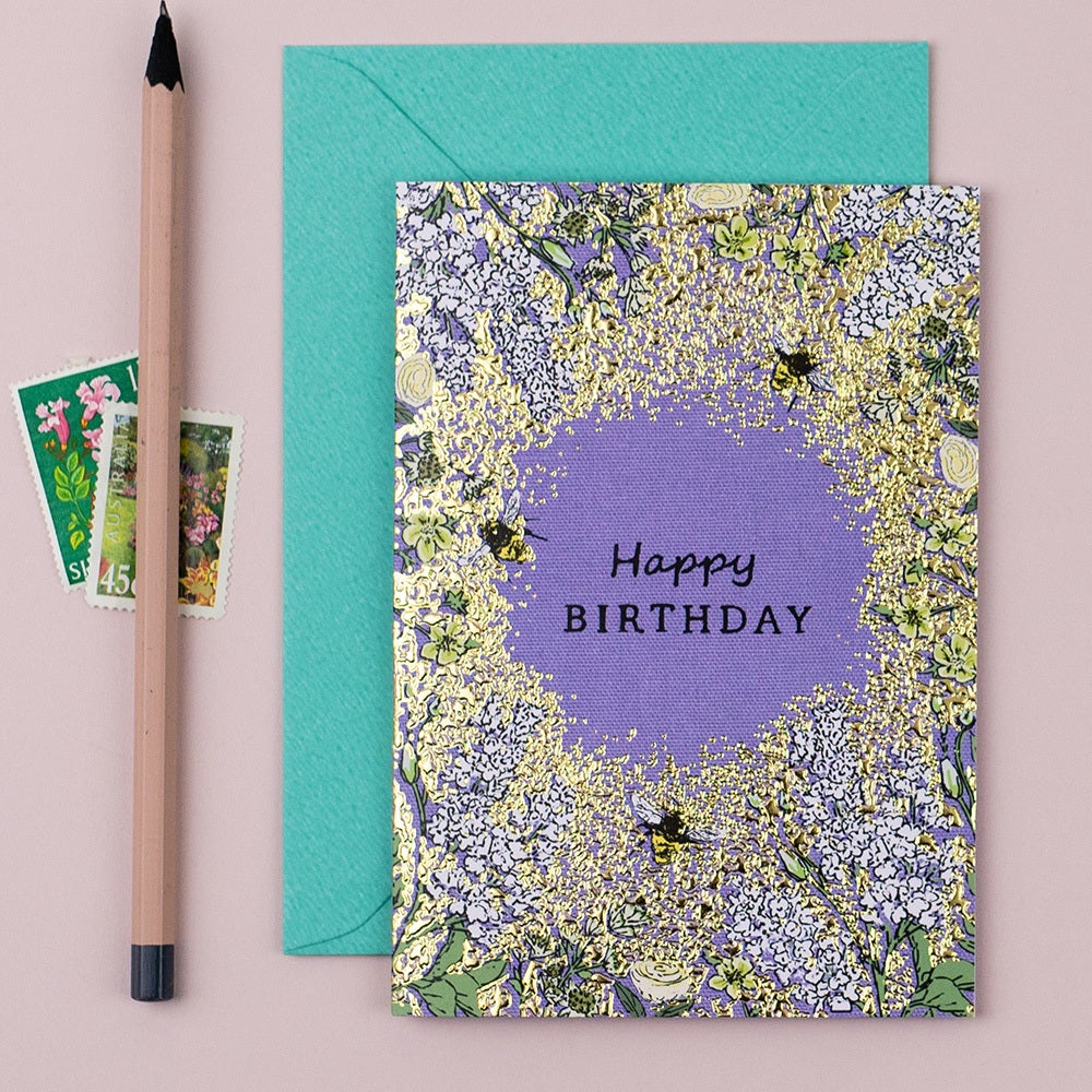 Petite greeting card is printed on sustainably sourced cardstock and heavily gold foiled. Measures 4.5″ x 6.4″ with envelope. Blank Inside.