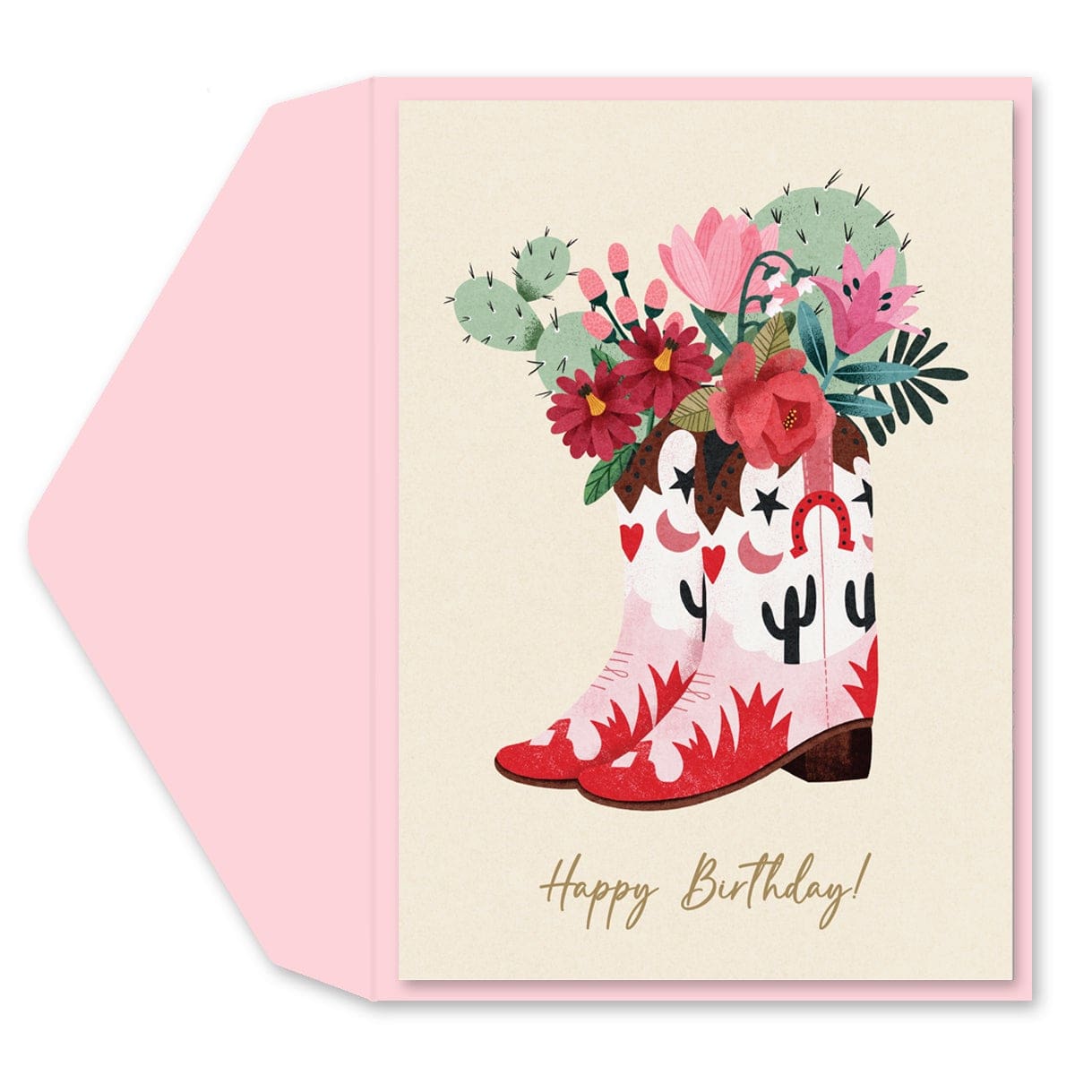 This 4.75″ x 6.62″ greeting card features glitter, gold foil, and is paired with a colour-coordinating envelope. INSIDE: Hope you have a rootin’ tootin’ good time!