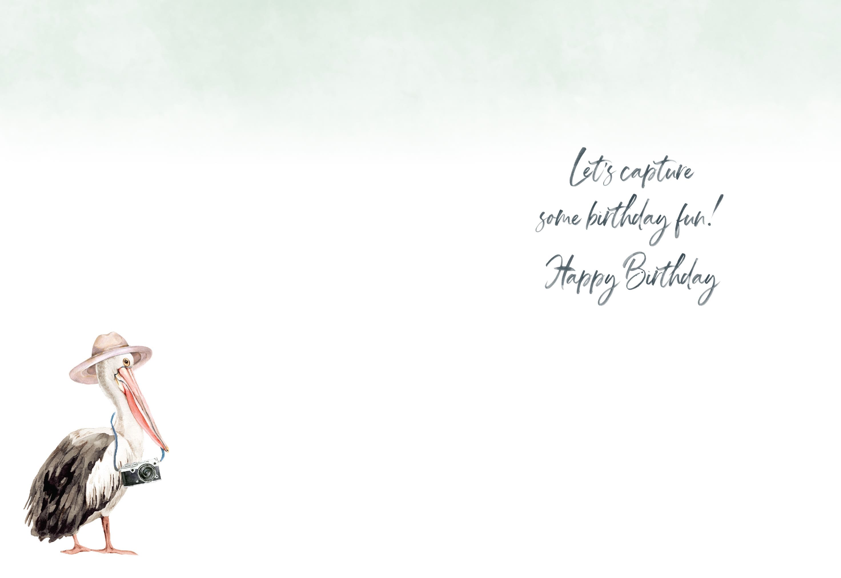 Full size card measuring 5×7″ is printed in Canada with full colour on the interior & exterior. Each card includes an envelope and wrapped in cellophane. INSIDE: Let’s capture some birthday fun! Happy Birthday