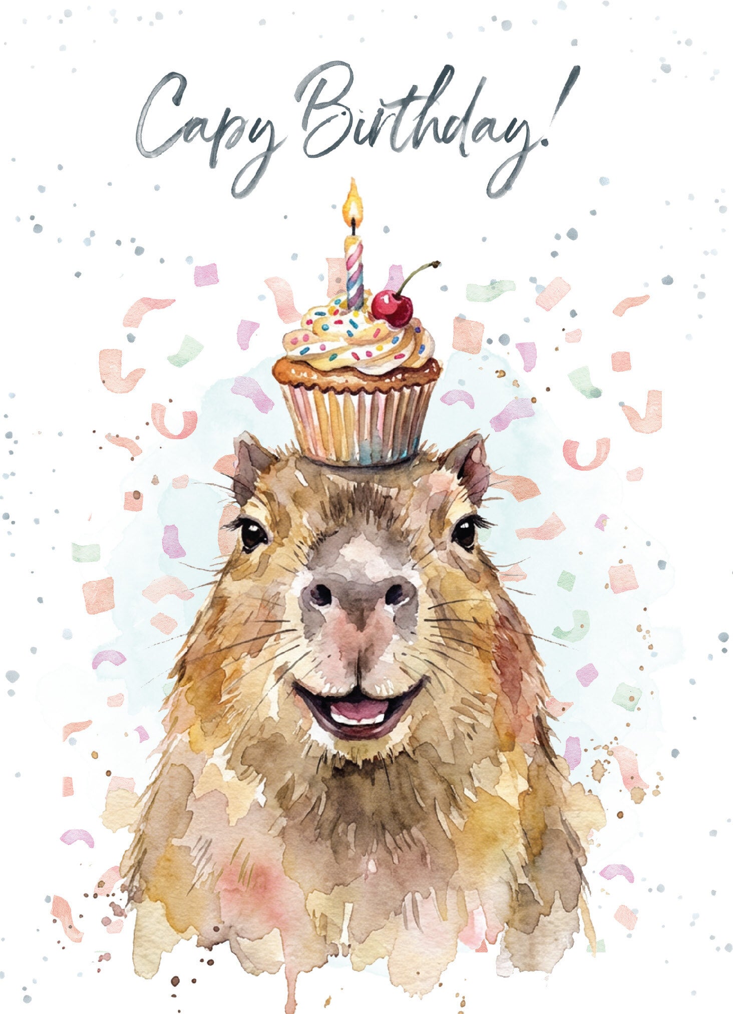 Full size card measuring 5×7″ is printed in Canada with full colour on the interior & exterior. Each card includes a pale green envelope and wrapped in cellophane. INSIDE: Stay calm, eat cake, and enjoy your special day!