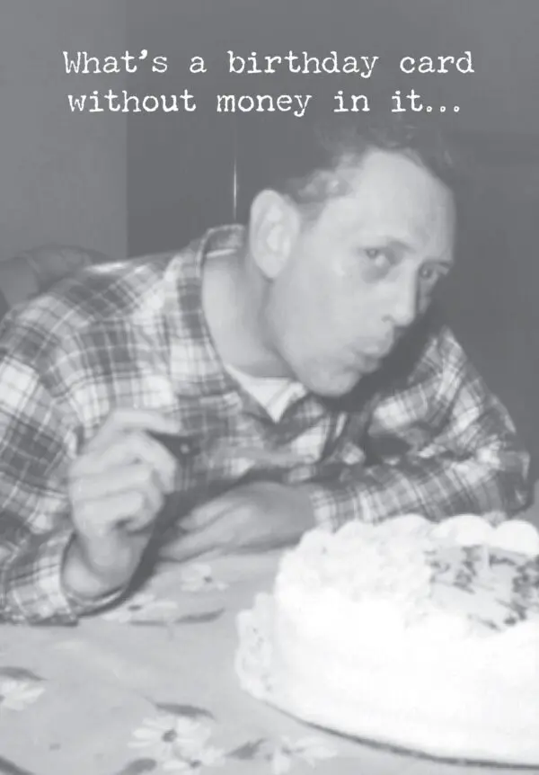 A humorous 4.75″ x 7″ greeting card lending a vintage photograph to coordinate with its outside. INSIDE: This One! Printed in Canada.