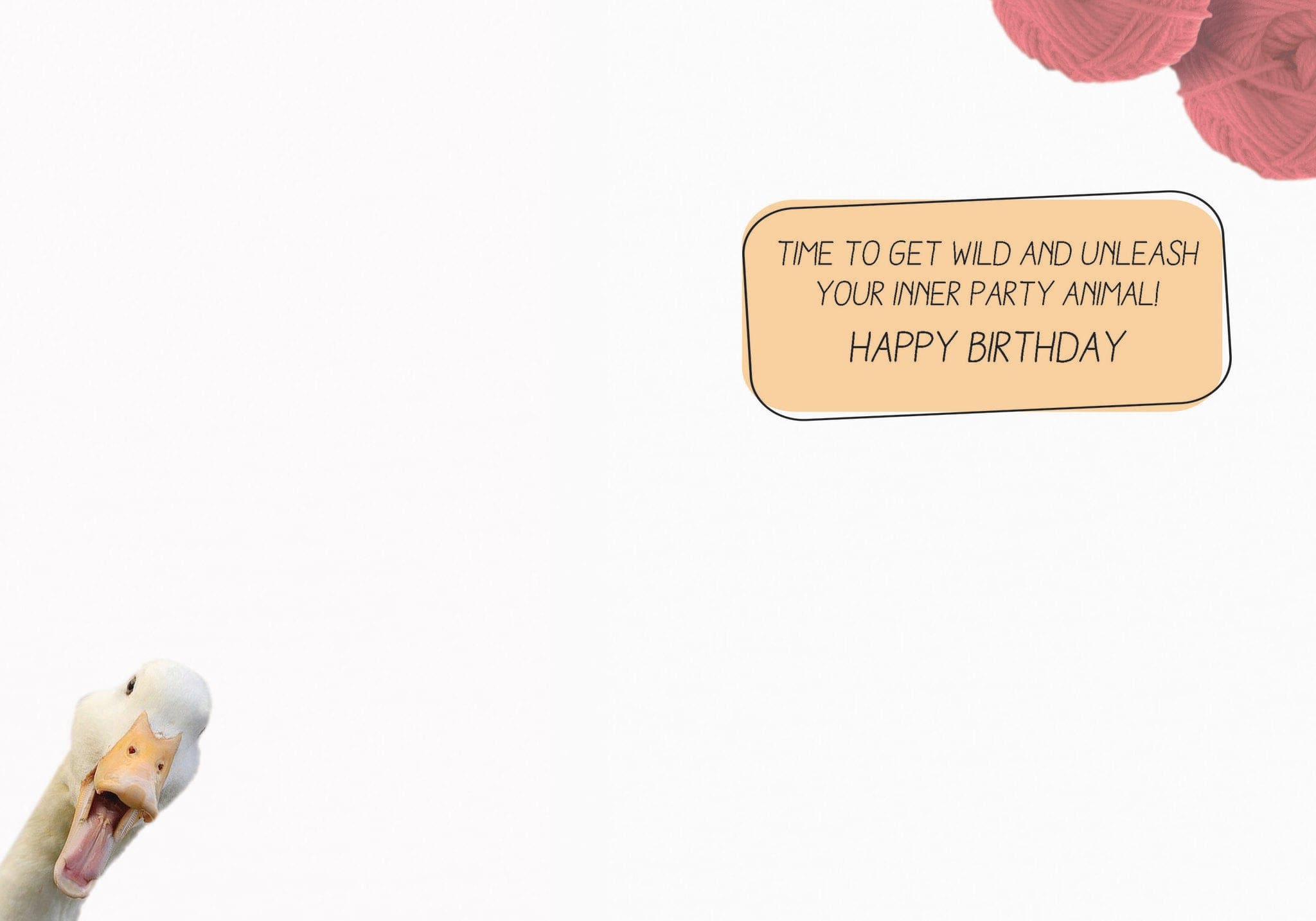 Each card measures 5″x7″ (13cmx18cm) and is printed in full colour on coated paper, comes with a coordinating colour envelope. Printed in Canada. INSIDE: Time to get wild and unleash your inner party animal! Happy Birthday