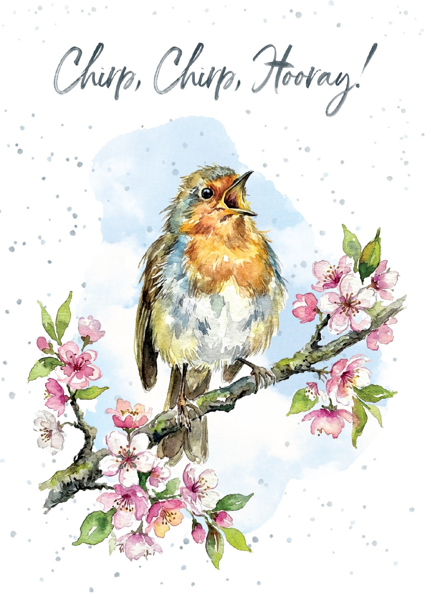 Full size card measuring 5×7″ is printed in Canada with full colour on the interior & exterior. Each card includes a pale green envelope and wrapped in cellophane. INSIDE: Sending you a chorus of happy birthday wishes!
