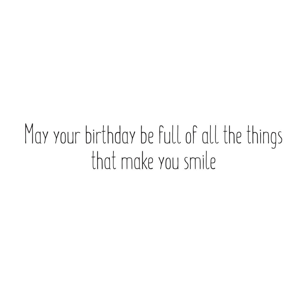 This 4.75″ x 6.62″ greeting card features copper foil and is paired with a colour-coordinating envelope. INSIDE: May your birthday be full of all of the things that make you smile.