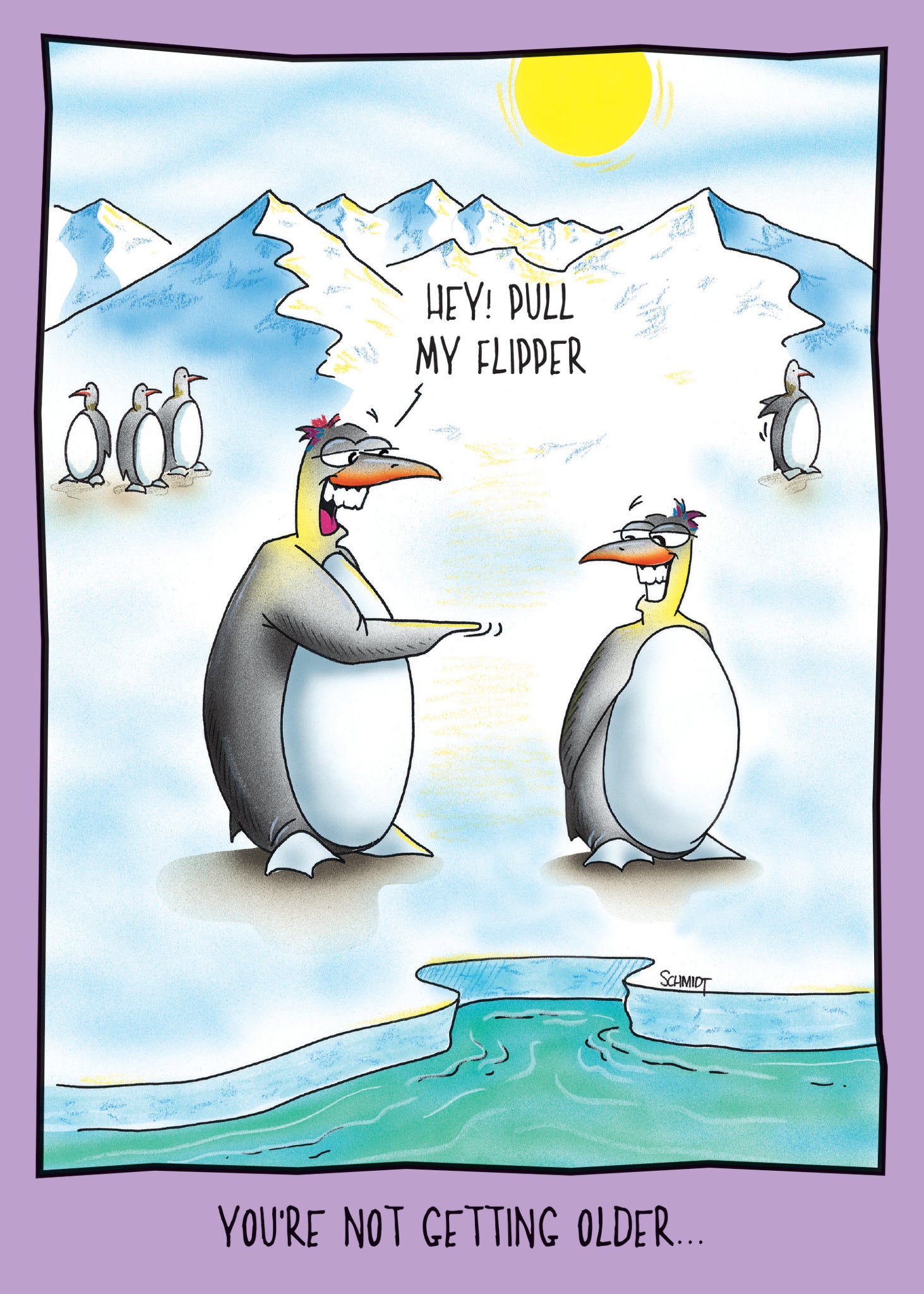 5 x 7″ greeting card printed in full-colour with a colour coordinated envelope. INSIDE: Just getting your second wind. Happy Birthday. Printed in Canada