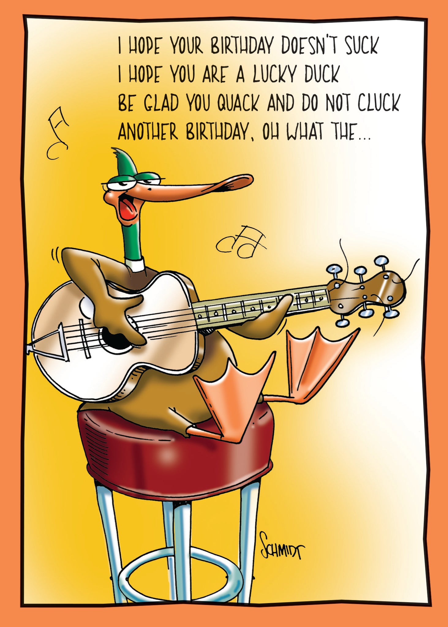 5 x 7″ greeting card printed in full-colour with a colour coordinated envelope. INSIDE: Heck you look fantastic! Happy Birthday. Printed in Canada