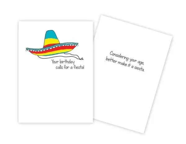 Size: 4 1/2 x 6. INSIDE: Considering your age, better make it a siesta. Printed in Canada