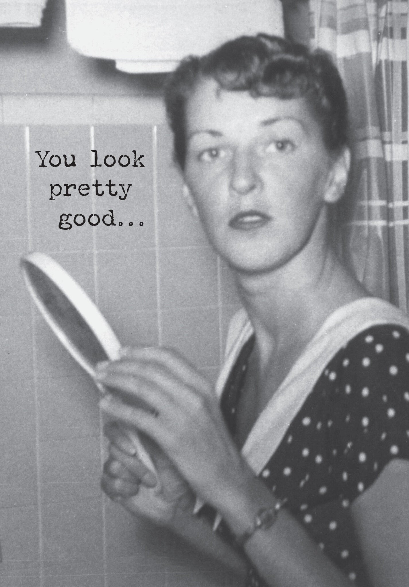 A humorous 4.75″ x 7″ greeting card lending a vintage photograph to coordinate with its outside. INSIDE: For Someone From The 1900’s! Printed in Canada.