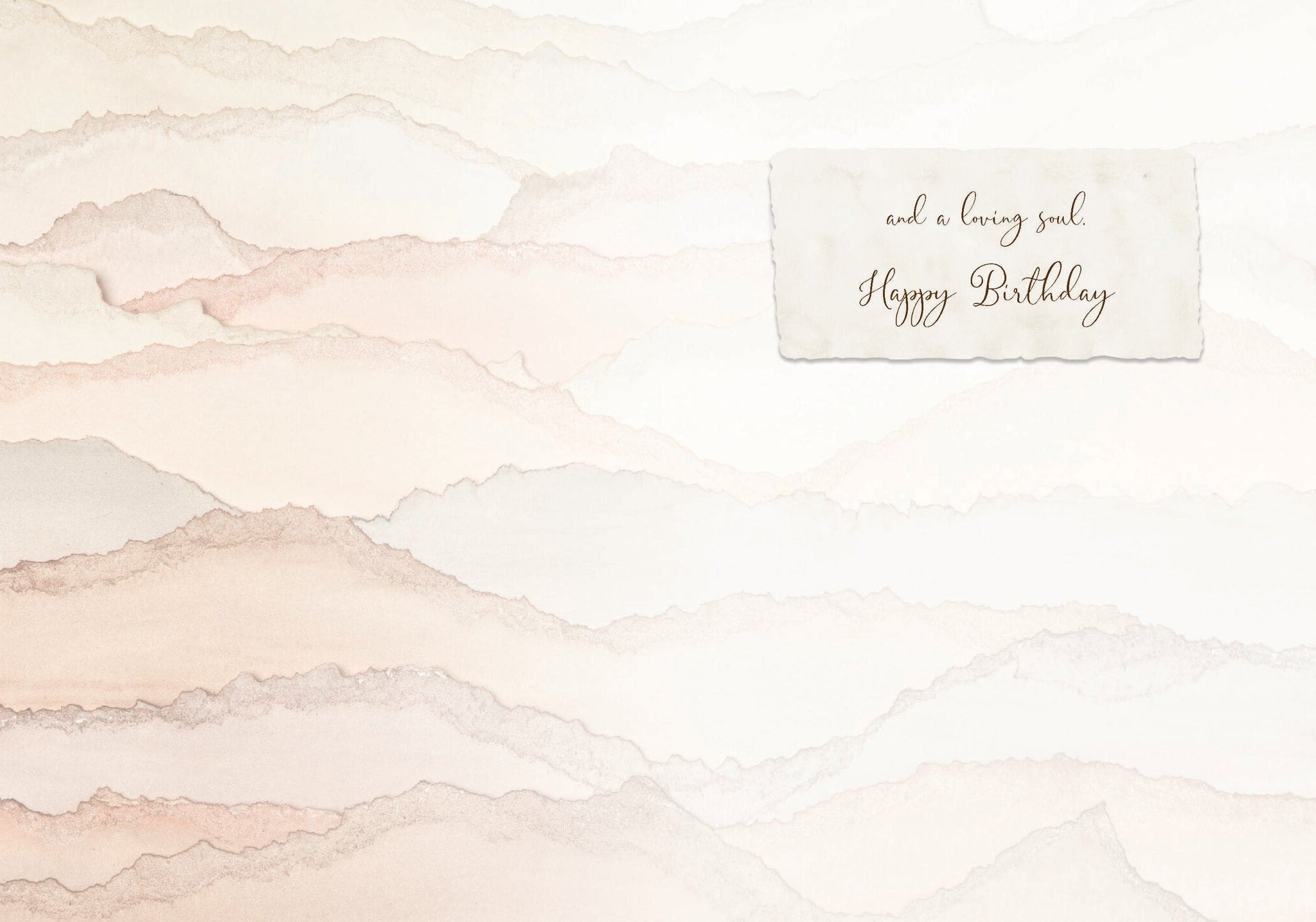 Each card measures 5″x7″ (13cmx18cm) and is printed in full colour on linen paper, comes with a coordinating colour envelope. Printed in Canada. Inside greeting: and a loving soul. Happy Birthday