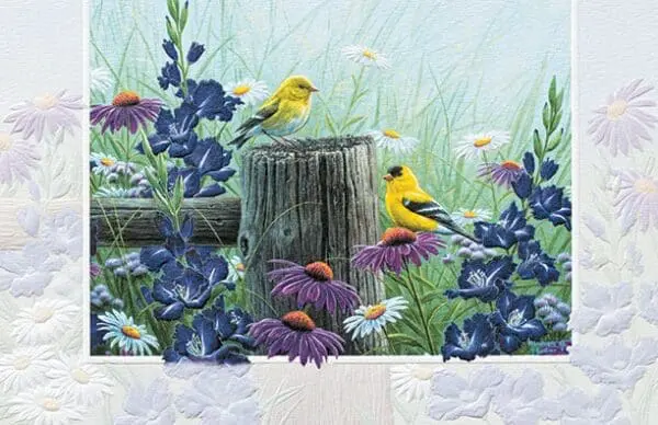 Gorgeous, embossed greeting card measures 8-1/4″ x 5-3/8″. Inside greeting: Wishing you many blessings on your birthday. May the Lord continually bless you with heaven’s blessings as well as with human joys. Psalm 128:5 TLB