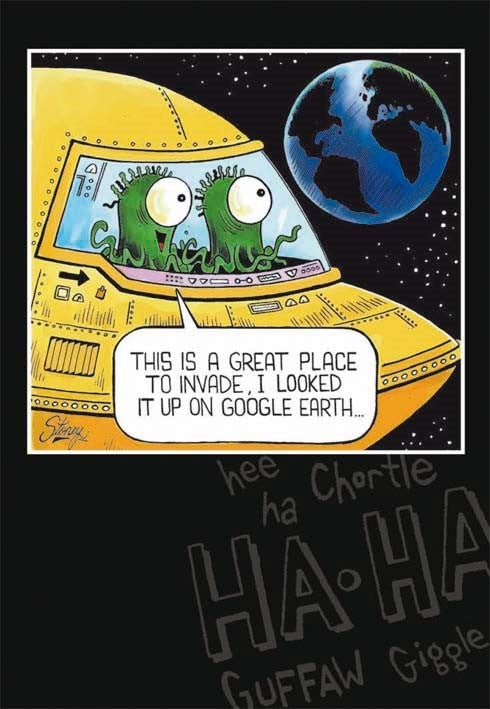 Insanity Streak 5″x7″ cards Mark Lynch Humor. Inside: Have an extra terrestrial birthday!