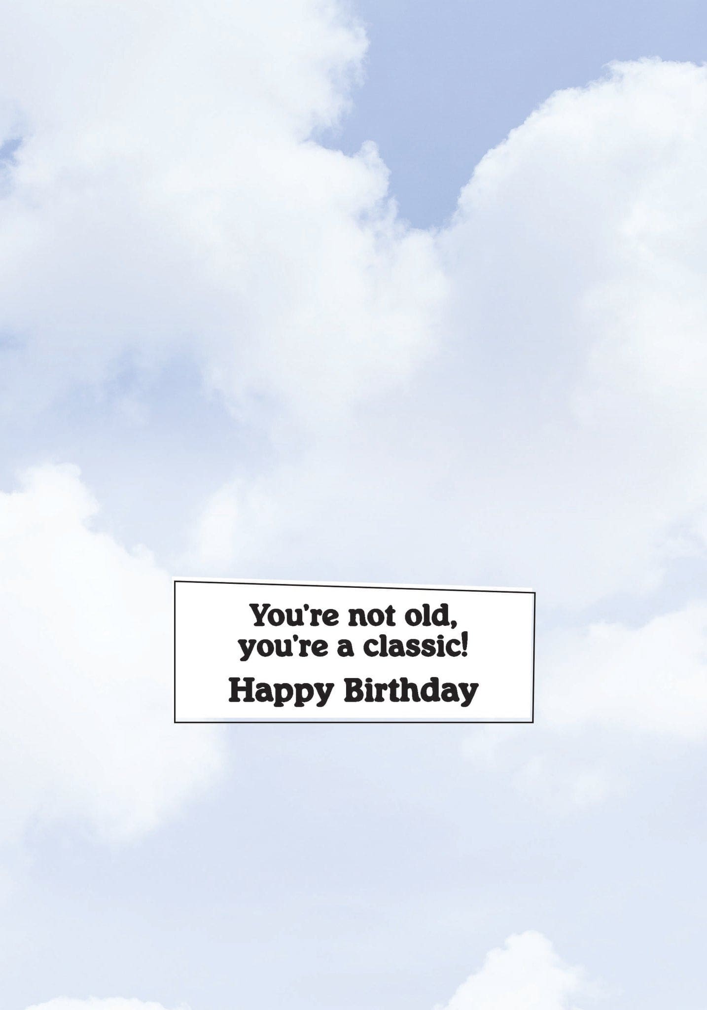 Each card measures 5″x7″ (13cmx18cm) and is printed in full colour on coated paper, comes with a coordinating colour envelope. Printed in Canada. INSIDE: You’re not old, you’re a classic! Happy Birthday