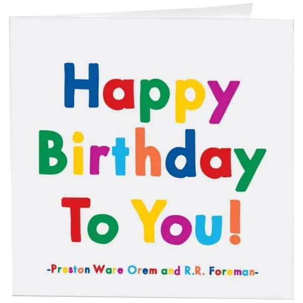 5″ square greeting card. Printed in Canada on recycled paper. Inside: happy birthday to you