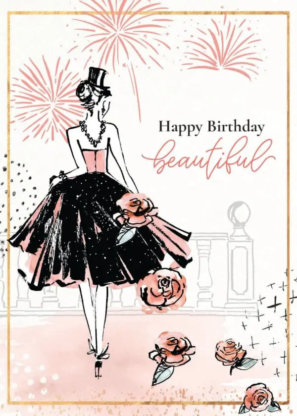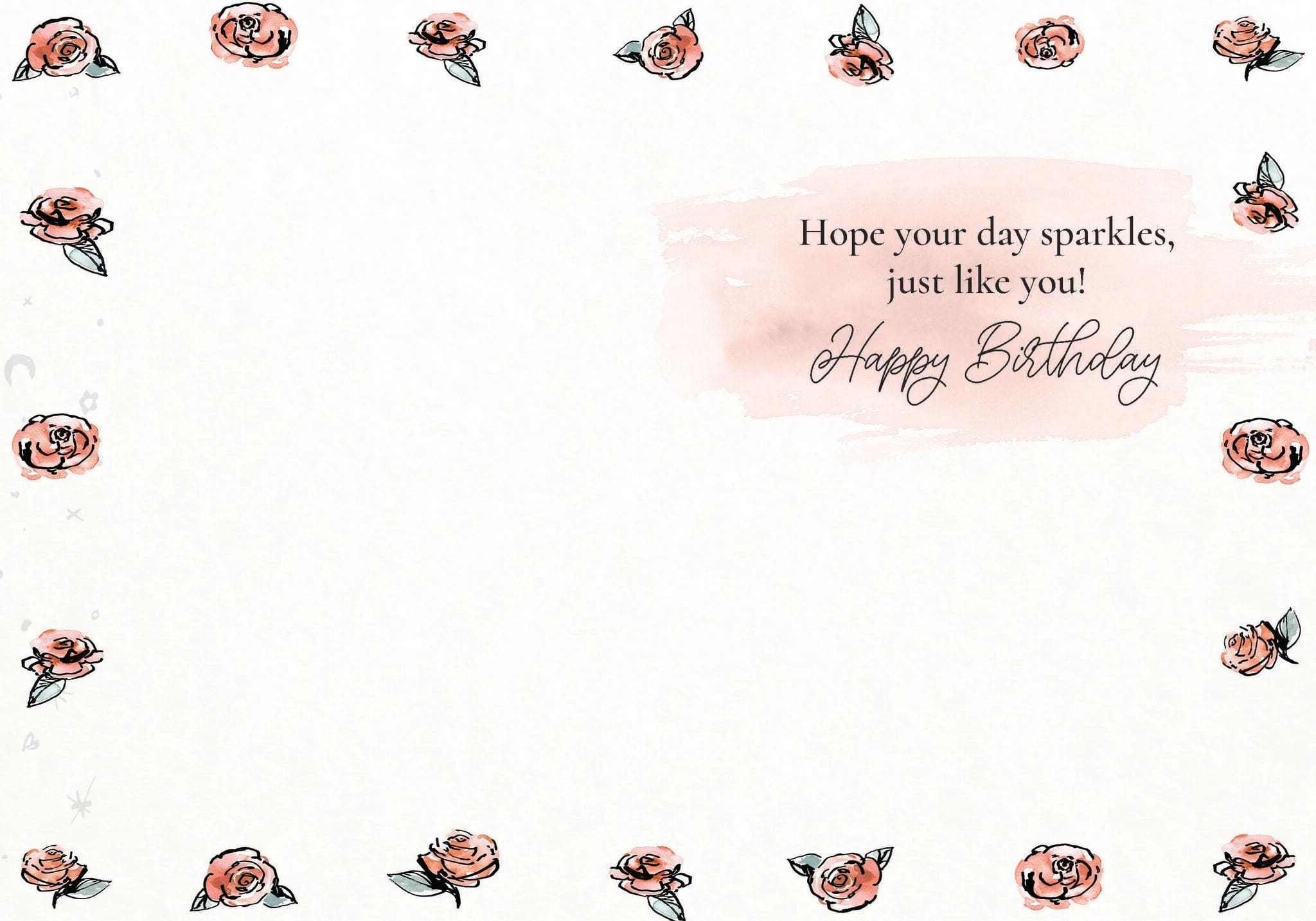 Each card measures 5″x7″ (13cmx18cm) and is printed in full colour on watercolour paper, comes with a coordinating colour envelope. Printed in Canada. INSIDE: Hope your day sparkles, just like you! Happy Birthday