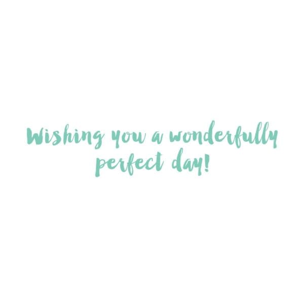 This 4.75″ x 6.62″ greeting card features gold foil and is paired with a colour-coordinating envelope. INSIDE: Wishing you a wonderfully perfect day!