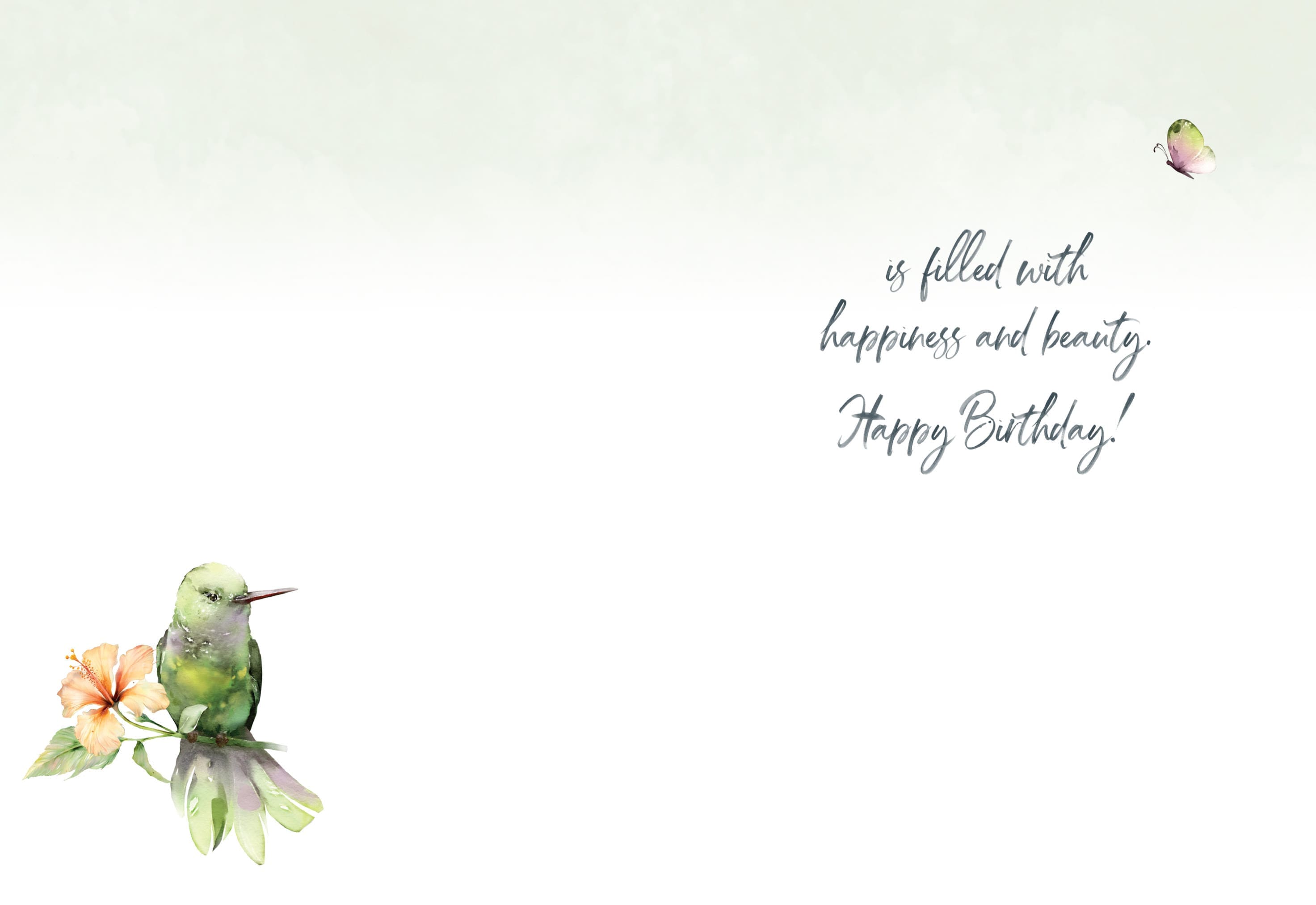 Full size card measuring 5×7″ is printed in Canada with full colour on the interior & exterior. Each card includes an envelope and wrapped in cellophane. INSIDE: is filled with happiness and beauty. Happy Birthday!
