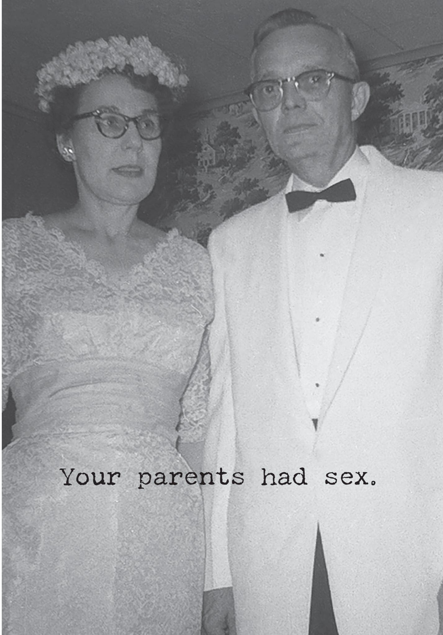 A humorous 4.75″ x 7″ greeting card lending a vintage photograph to coordinate with its outside. INSIDE: Just a little something to think about on your birthday. Printed in Canada.