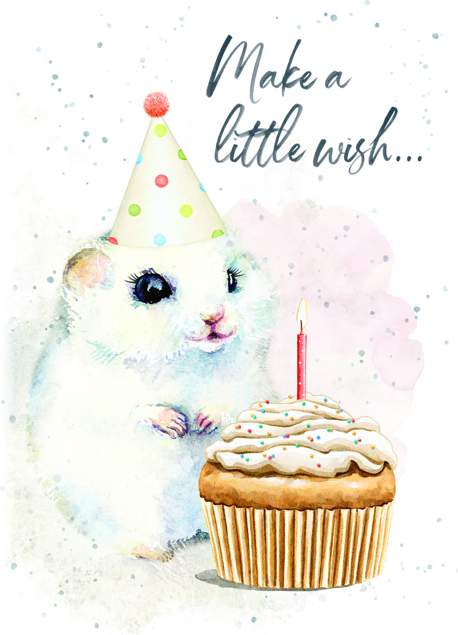 Full size card measuring 5×7″ is printed in Canada with full colour on the interior & exterior. Each card includes a pale green envelope and wrapped in cellophane. INSIDE: And let it come true. Happy Birthday!