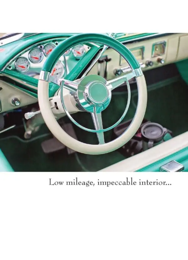 5″ x 7″ with white envelope. INSIDE: and you’ve still got a classy chassis too! Happy Birthday. Printed in Canada