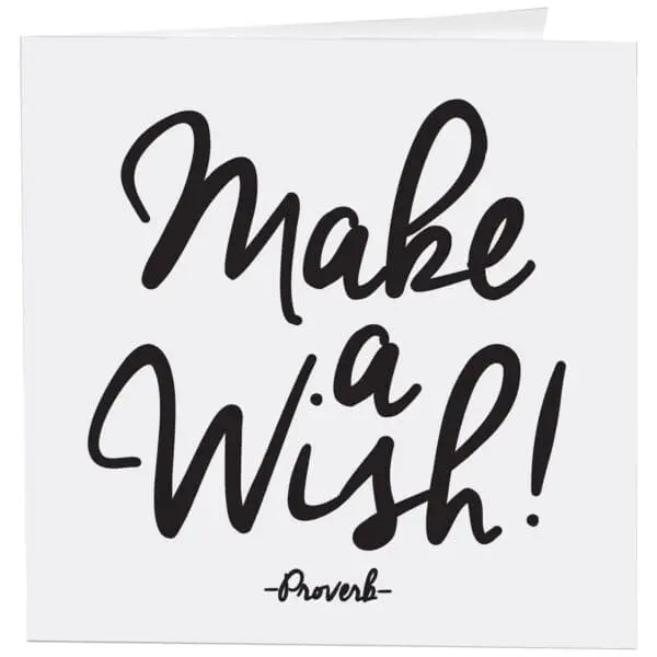 5″ square greeting card. Printed in the USA on recycled paper. Inside: make a wish!