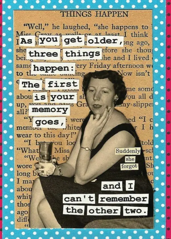 Measures 5″x7″ and is printed in full colour on coated paper, and comes with a coordinating colour envelope. Printed in Canada. INSIDE: Happy Birthday! Remember, age is just a number… a big number that’s increasingly difficult to remember!