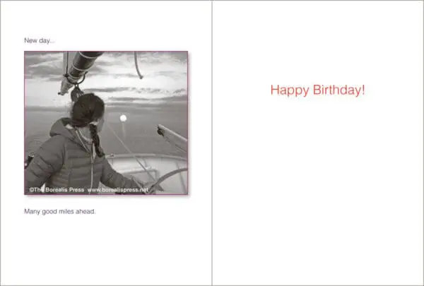 5″ x 7″ card. INSIDE: Happy Birthday!