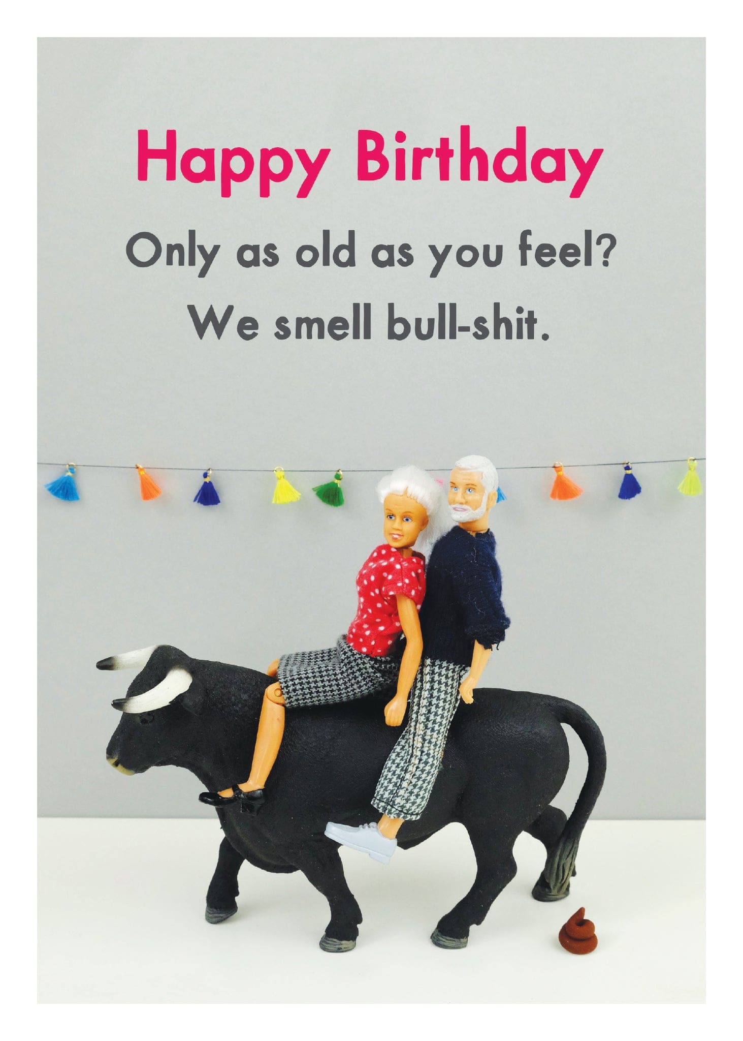 Greeting card measures 5 x 7″ and includes colourful envelope. INSIDE: More like old enough to know better but young enough not to care. Printed in Canada