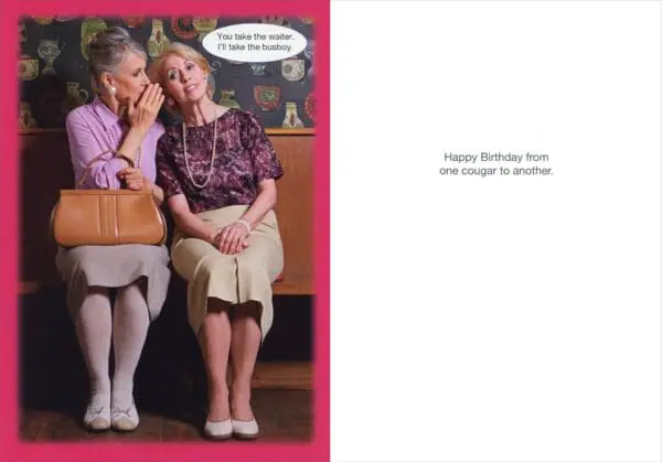 5″ x 7″ with white envelope INSIDE: Happy Birthday from one cougar to another.