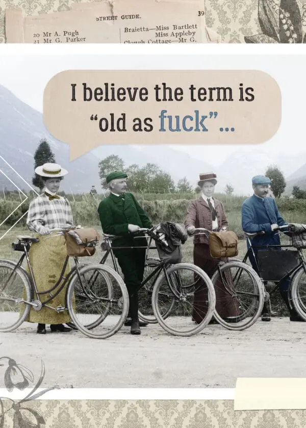 5 x7″ Card with Kraft Envelope. INSIDE: but we can go with over the hill if that would make you feel better. Happy Birthday. Printed in Canada.