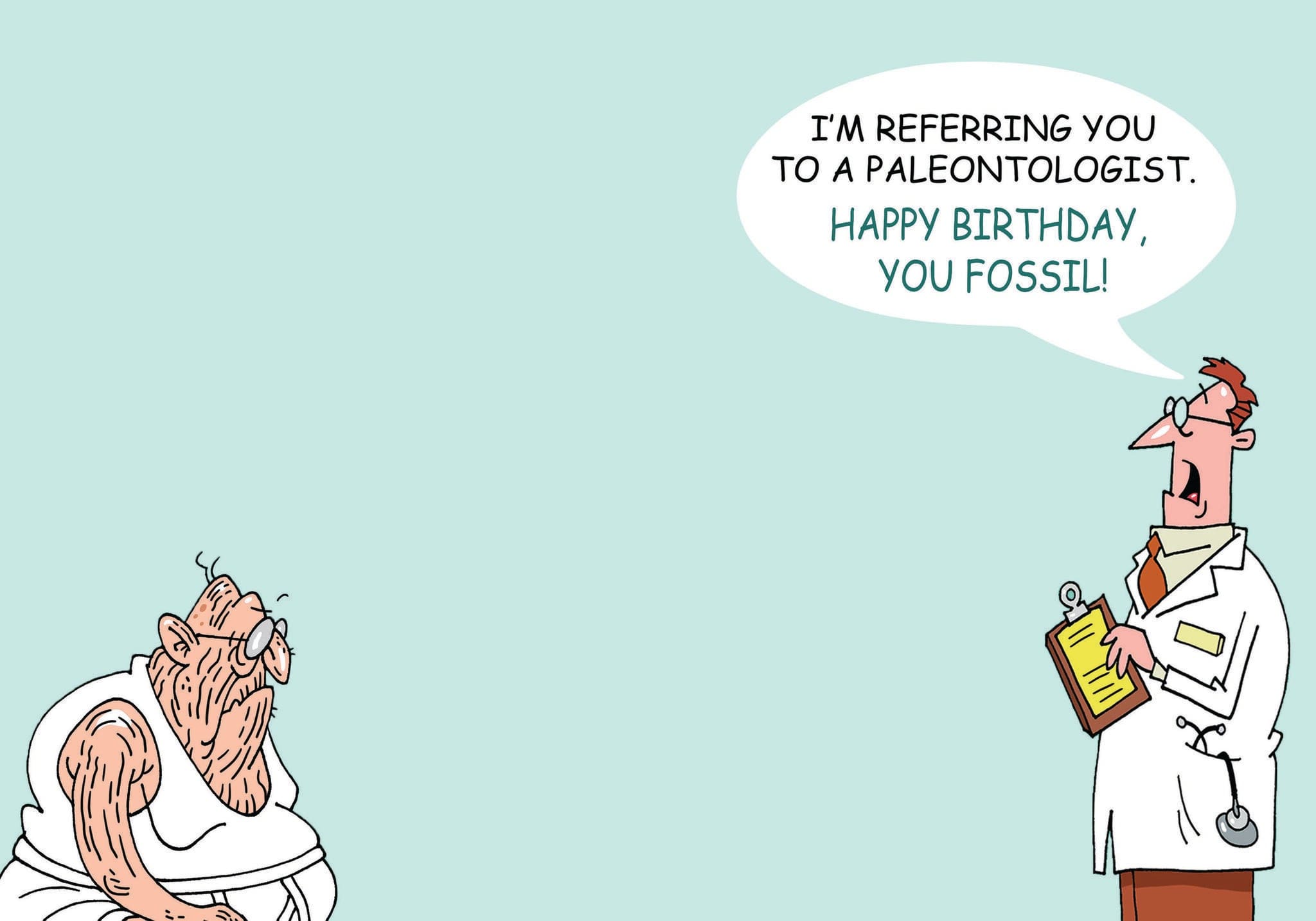 Each card measures 5″x7″ (13cmx18cm) and is printed in full colour on coated paper, comes with a coordinating colour envelope. Printed in Canada. INSIDE: I’m referring you to a paleontologist. Happy birthday, you fossil!