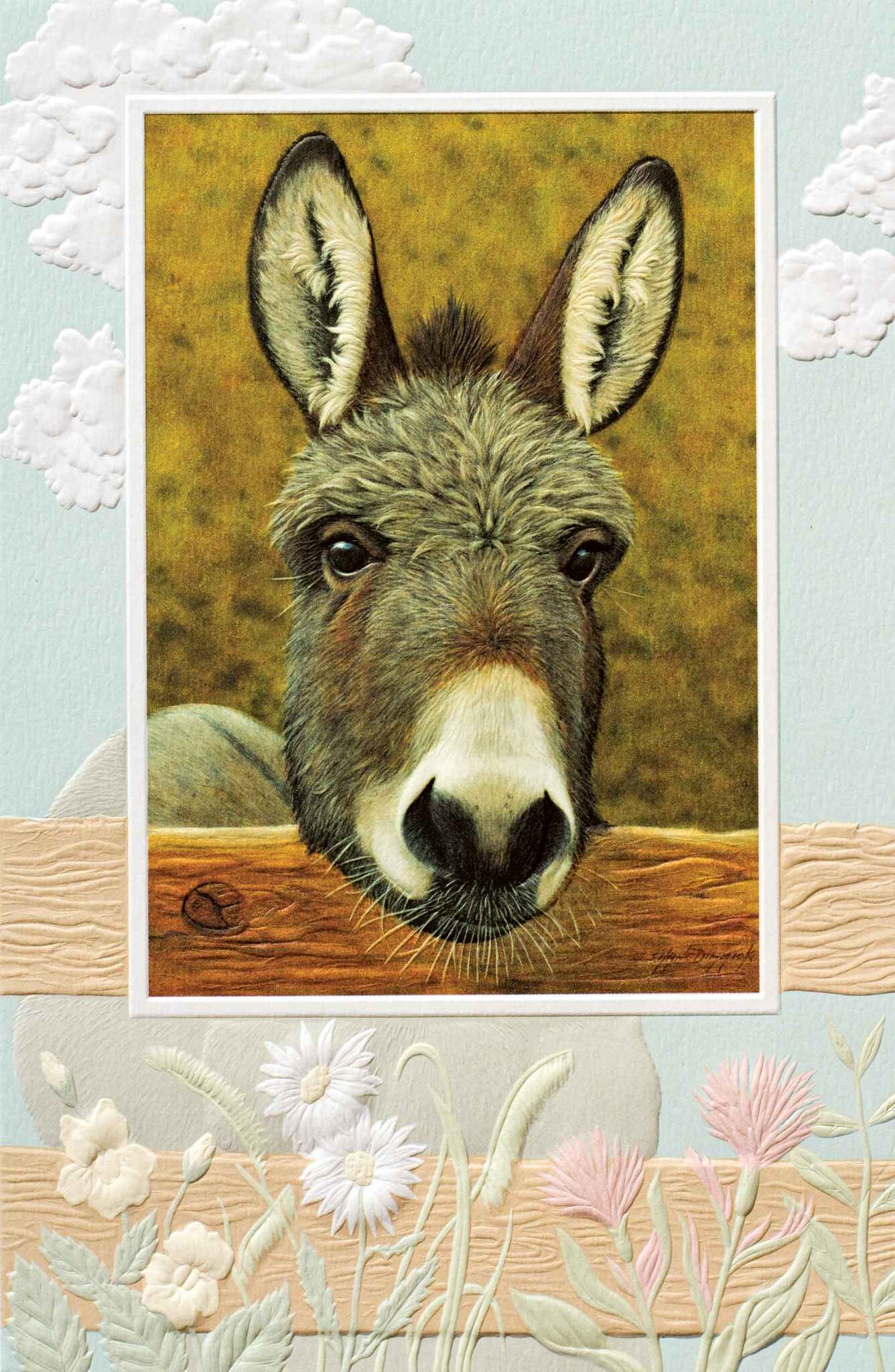 Gorgeous, embossed greeting card measures 8-1/4″ x 5-3/8″. Inside greeting: You? Look older? Redonkulous! Happy Birthday