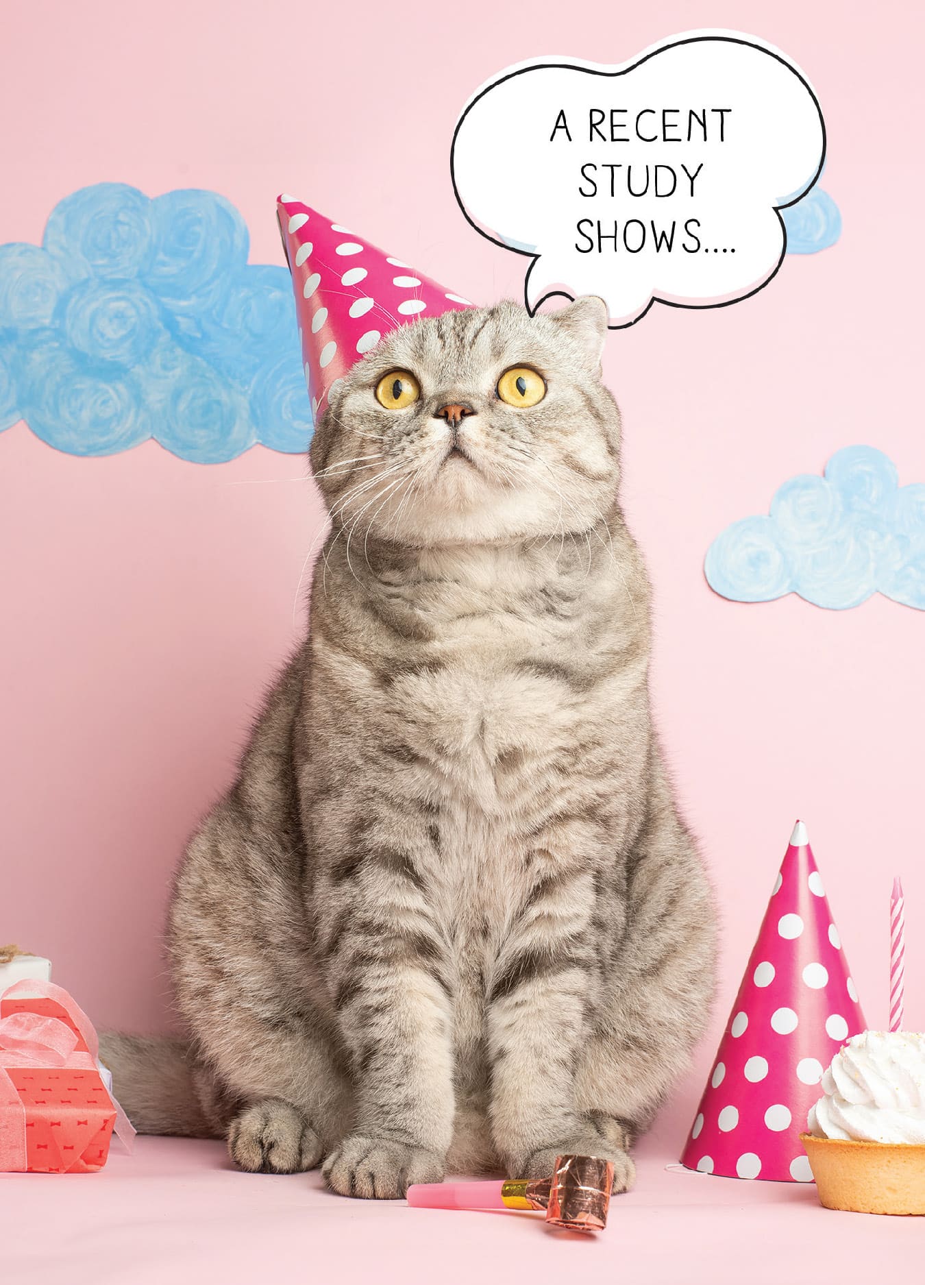 4.5″x6.25″, printed on coated paper, with coordinating envelope. Printed in Canada. Inside greeting: 5/5 cats don’t care about your birthday.