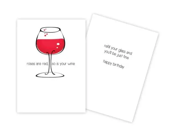 Size: 4 1/2 x 6.INSIDE: Refill your glass and you’ll be just fine. Happy Birthday. Printed in Canada